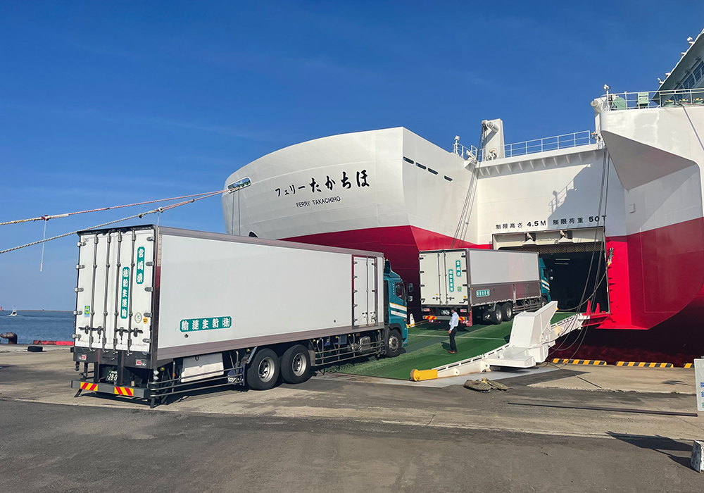 弊社では長時間労働を解消するため、トレーラーシャーシによる海上輸送・鉄道輸送での無人輸送に取り組んでいます。